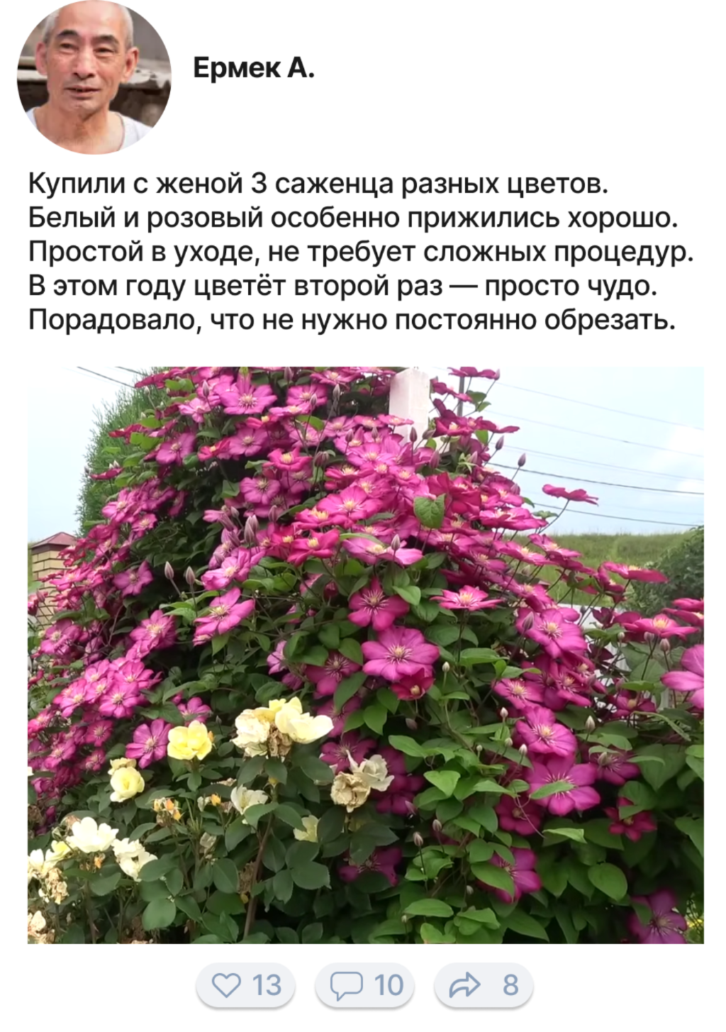Клематис махровый «Патриция» — цветочная роскошь без хлопот