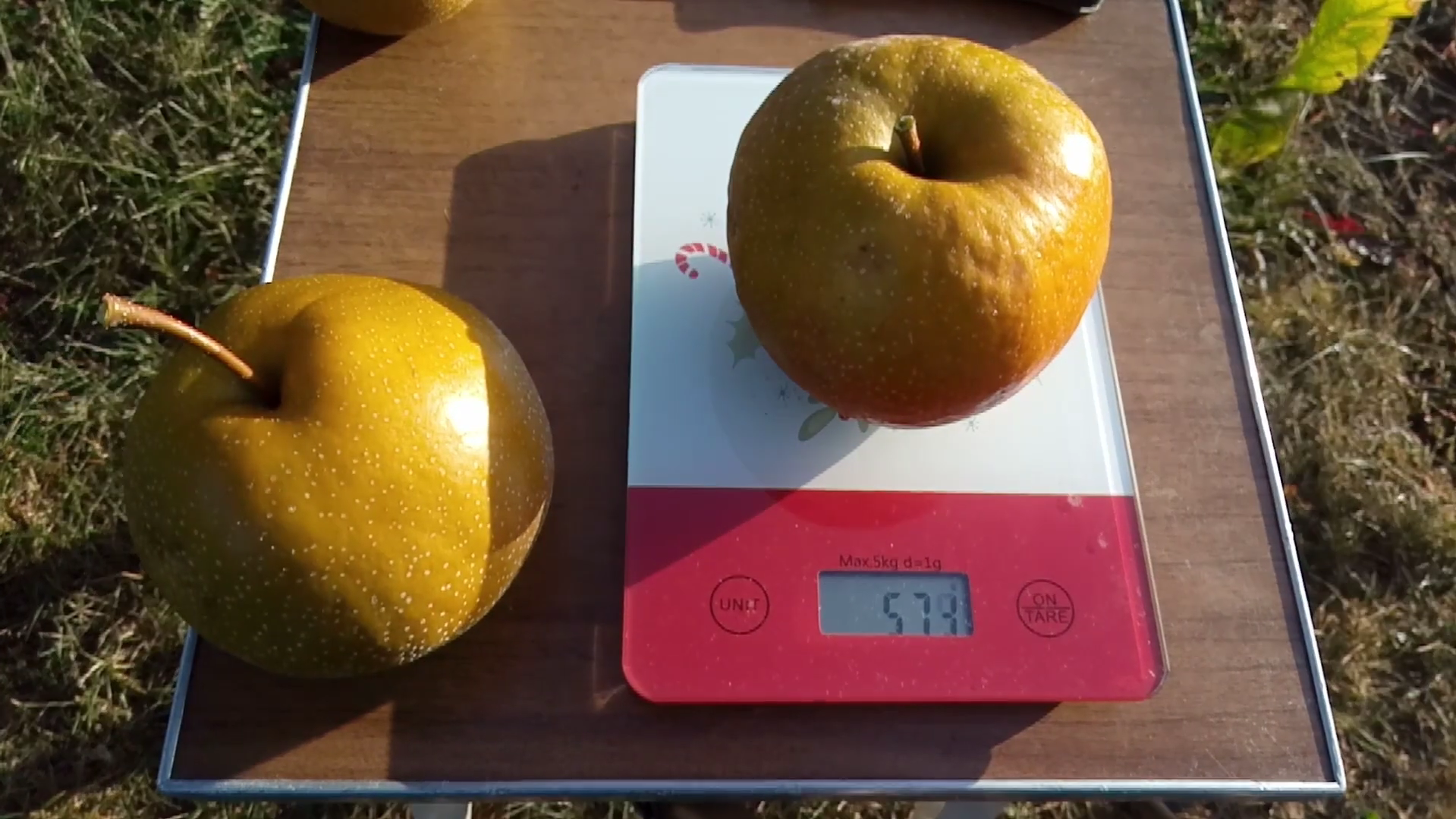 Мевасининг катталиги 10 см гача, оғирлиги 450 г гача. Эти оқиш-қаймоқ рангда, жуда зич ва қарсилдоқ, ёқимли ширин таъмга эга бўлиб, унда гул, цитрус ва карамель таъмлари сезилиб туради. Сентябрь ойининг охири - октябрь ойининг бошларида пишиб етилади ва музлатгичда 3-4 ойгача аъло даражада сақланади, бунда текстура ва хушбўйлиги янада тўйинган бўлади.