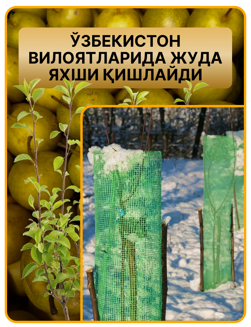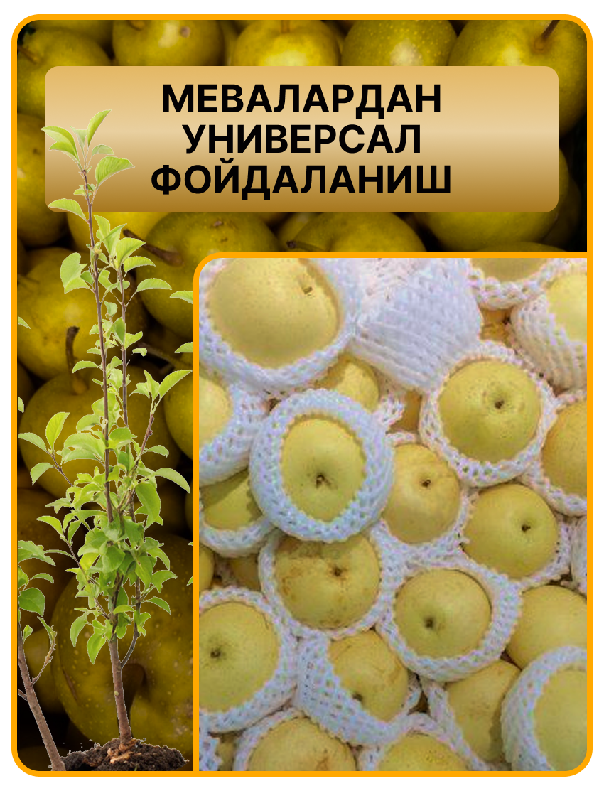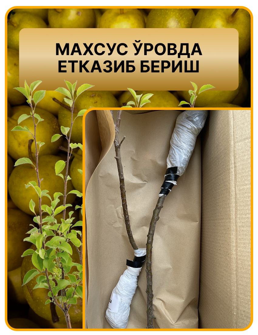 Асал ва олма ҳидли, серсув, қарсилдоқ мевалар. Кўчатлар Ўзбекистон иқлимига мослашган, осон кўкаради ва келаси йилиёқ ҳосилга киради!