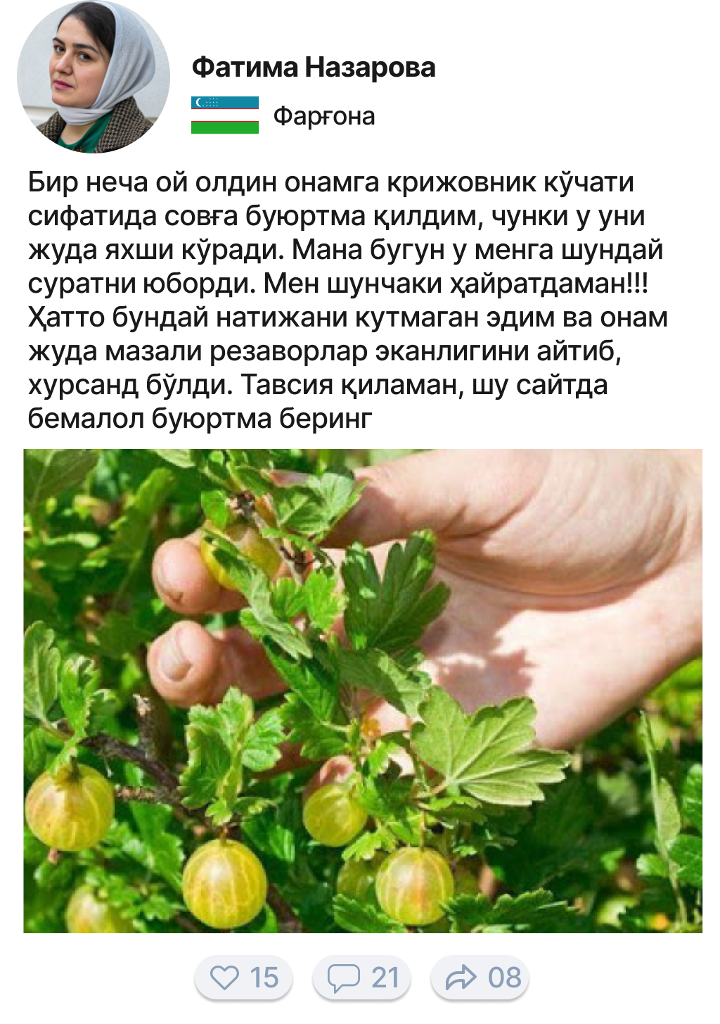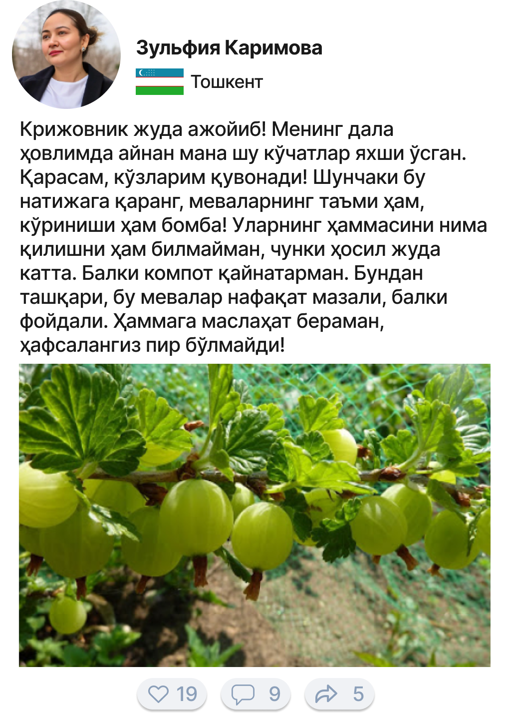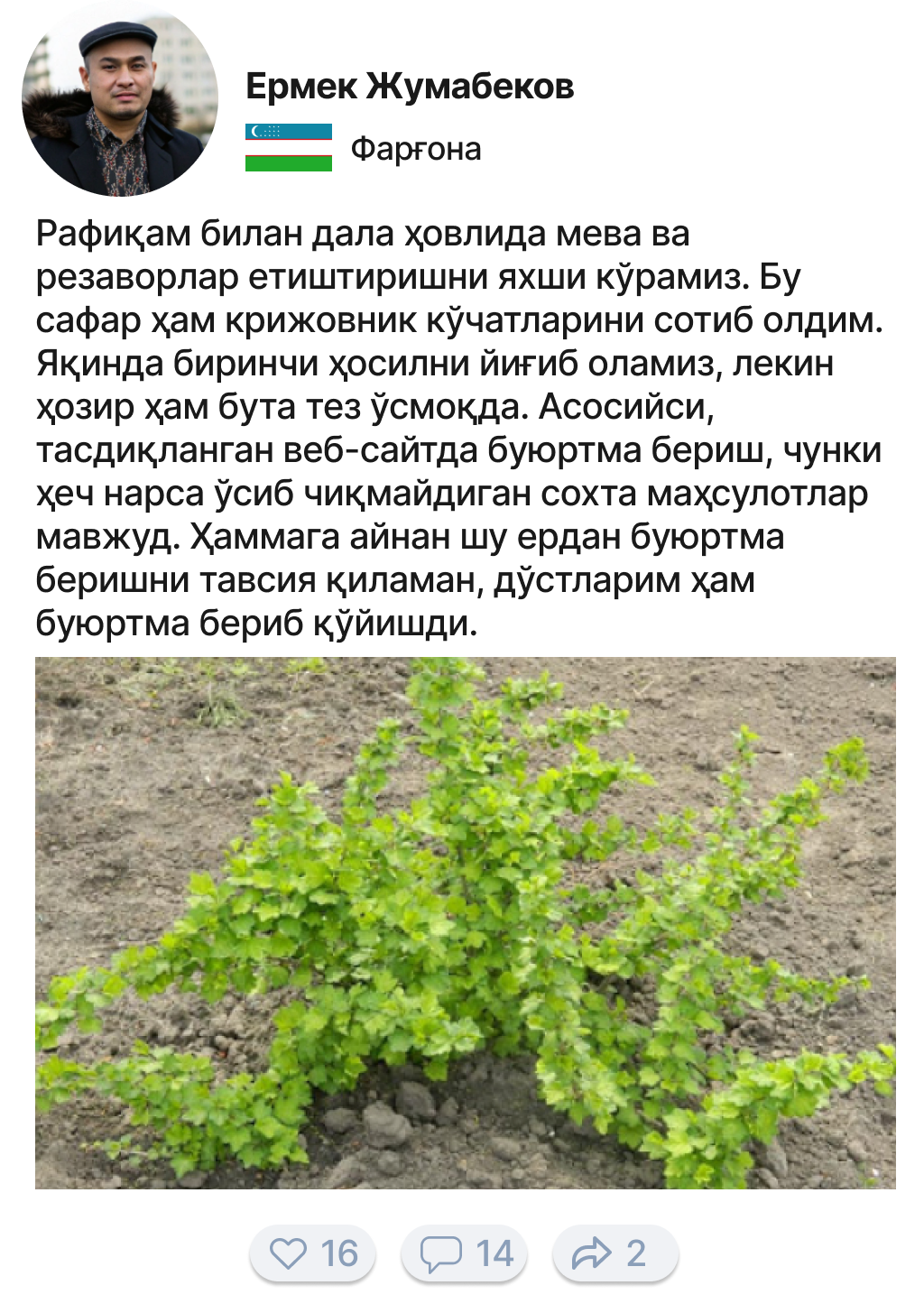Крижовник кўчатларини супер чегирма билан буюртма қилиш имкониятини қўлдан бой берманг